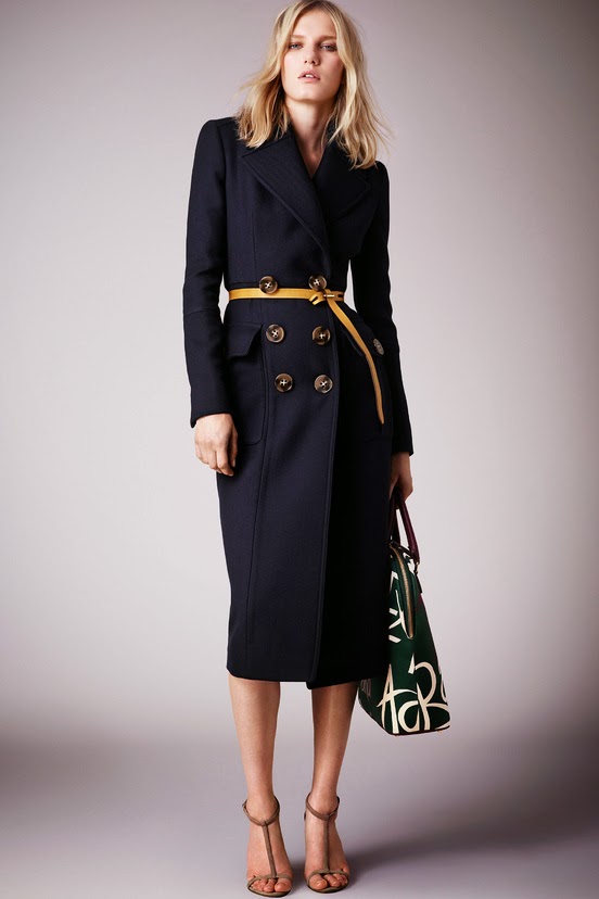 Para la colección Cruise 2015, Bailey reinventa uno de los clásicos de la firma, el trench, actualizándolo con nuevos diseños, formas y acabados. Podemos ver acabados en degradados o encajes que aportan un look actual a esta mítica prenda.