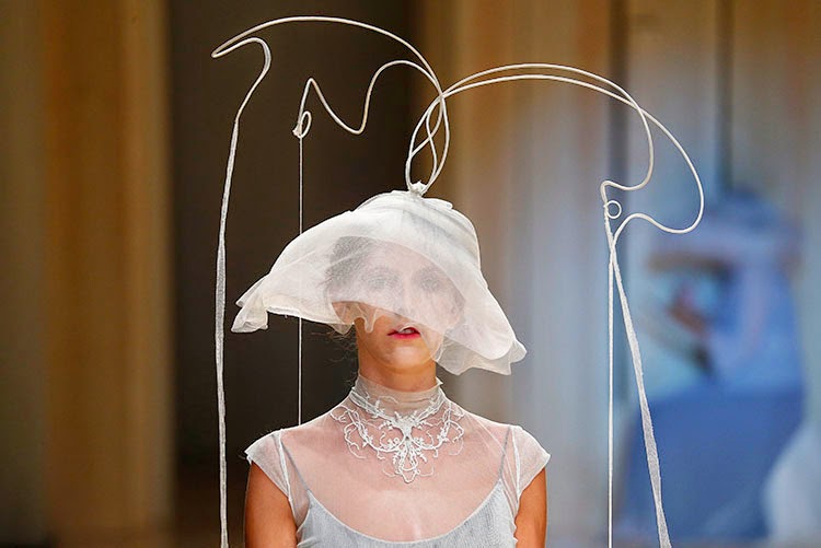 Como muchos ya sabéis la semana pasada asistí algunos de los desfiles de la 080 Barcelona Fashion. Hoy os quiero presentar una de las colecciones que tuve la suerte de poder ver... Natalie Capell. Tengo que confesar que estaba impaciente de poder asistir a este desfile, ya que las diferentes colecciones que he visto de esta diseñadora Primavera-Verano 2014 y Sueño Mágico ,no solo me sorprenden sus creaciones sino la puesta en escena de ellos. La delicadeza en que esta tratado cada detalle, la música, estos ambientes que nos transportan a un mundo mágico en el que la belleza y la elegancia priman ante cualquier cosa. Sus diseños año tras año me sorprenden, son un derroche de estilo, feminidad, elegancia y dulzura. La colección primavera-verano 2015 de Natalie Capell se titula "Vent" (viento). Una colección de vestidos y combinaciones de prendas con tejidos ligeros, tules, sedas decorados con bordados, los grandes protagonistas. La delicadeza de las modelos al desfilar en la pasarela mientras de fondo se escucha una canción en francés y árabe que nos traslada a un mundo perfecto. Para esta colección, las tonalidades suaves son las grandes protagonistas gris perla, blanco que se combinan con transparencias y que nos invitan a volar en una colección de lo más romántica. Elegantes tocados de tela transparente que dejan entrever el rostro de las modelos, tiras de tul que dibujan formas en el movimiento, que dibujan ... el viento.